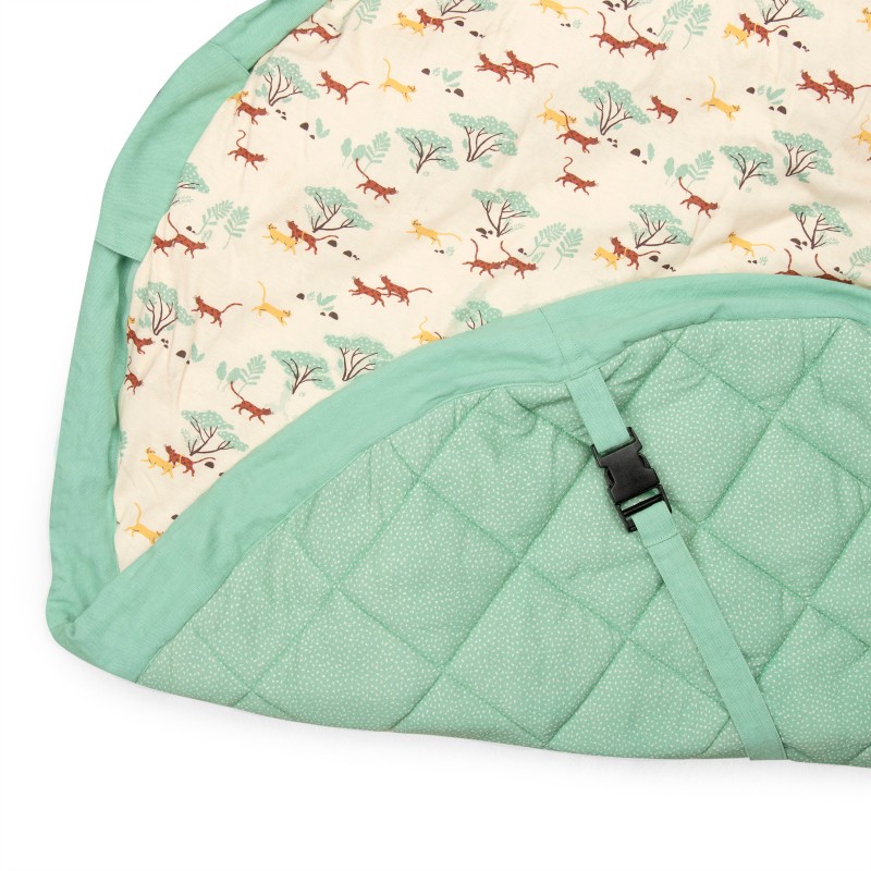 Astucieux et évolutif, ce tapis 2-en-1 s’adapte à toutes les envies : déplié, il offre un espace confortable pour jouer, gigoter et découvrir le monde ; relevé grâce à ses sangles, il devient un cocon sécurisé, parfait pour garder les jouets à portée de main.