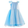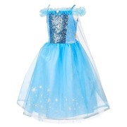 Une princesse telle une reine des neiges qui attend son prince charmant et qui a revêtue pour l'occasion sa plus belle robe bleue ! Cette robe est ornée de sequins, d'étoiles et de tulle. Un must-have dans la garde-robe des princesses. Taille 3-4 ans.