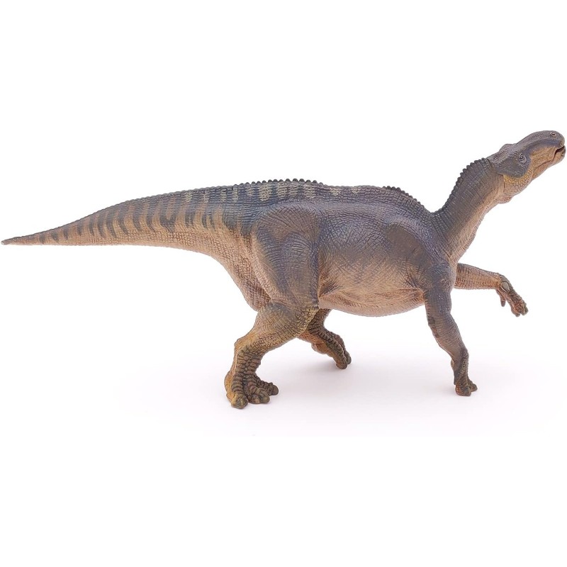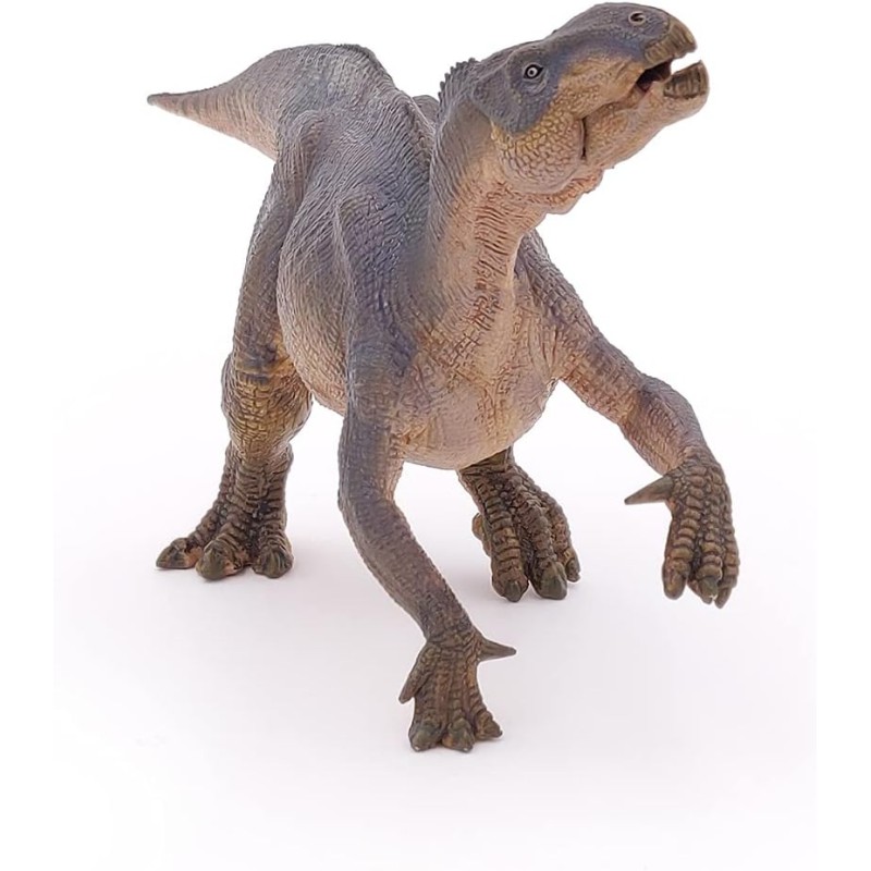 Iguanodon, figurine le monde des dinosaures de Papo. .Caractérisé par son bassin similaire à celui d'un oiseau, l'iguanodon était un dinosaure qui pouvait mesurer jusqu'à 5 mètres de haut pour 10 mètres de long et un poids de plus de 4 tonnes. Il était pourvu d'un bec corné, idéal pour arracher la végétation, et se déplaçait aussi bien sur 2 que sur 4 pattes. Dimensions : cm.