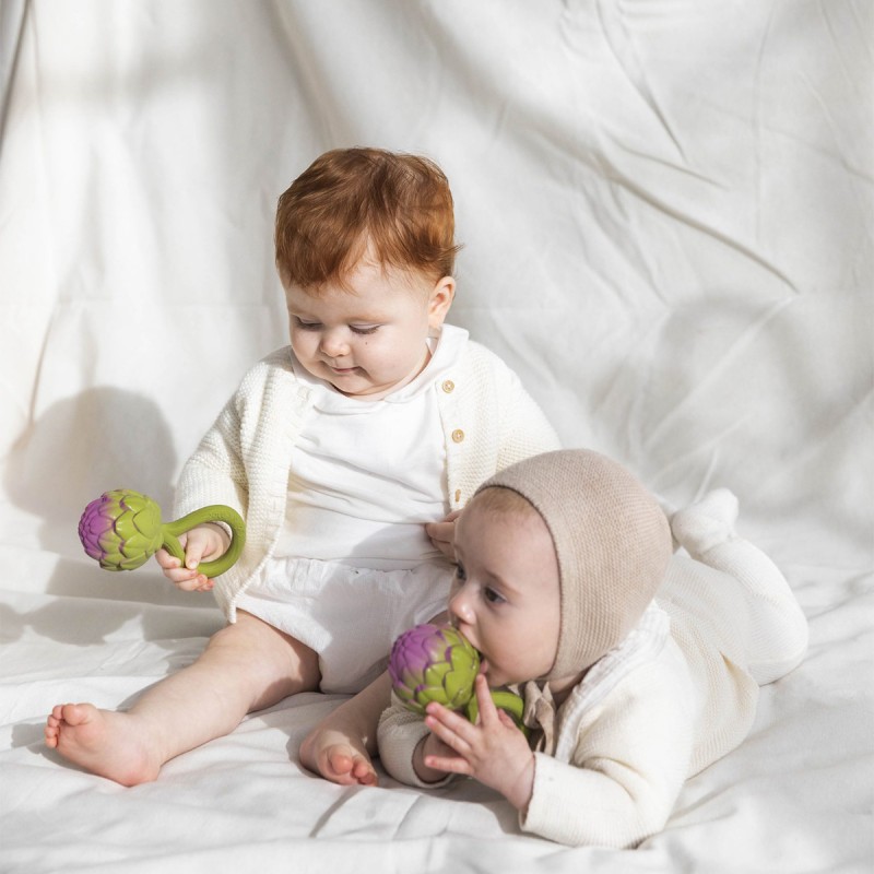 Fabriqué exclusivement à partir de caoutchouc naturel à 100%, découvrez ce hochet de dentition en forme d'artichaut qui a été conçu pour s'adapter parfaitement aux mains des tout-petits. De plus, il peut même être utilisé pendant le bain. La texture de ce hochet stimule les sens des bébés.