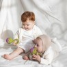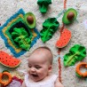 Ce qui distingue ces hochets, c'est leur engagement écologique. Ils sont les hochets les plus écologiques disponibles sur le marché. Cette gamme de hochets, sous forme de fruits et légumes, est entièrement biodégradable. Leur enveloppe extérieure est conçue à partir de caoutchouc naturel à 100%, tandis que l'intérieur renferme des graines de cerise recyclées, transformant ainsi cet anneau de dentition en un véritable hochet 2 en 1 !