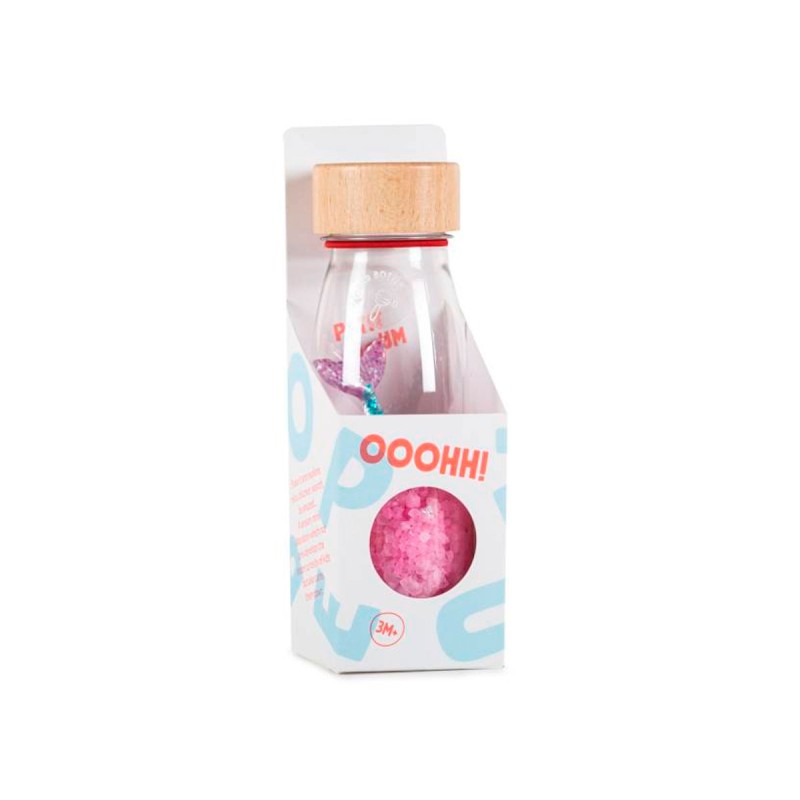 La bouteille sensorielle sirène de la marque Petit Boum est un jouet d'éveil inspiré de la pédagogie Montessori pour les bébés âgés de 3 mois et plus. Cette bouteille encourage la stimulation auditive et visuelle des tout-petits, les incitant à observer, agiter, et explorer les éléments qu'elle renferme. Fabriquée à la main en Espagne à partir de plastique recyclable, avec un bouchon en bois d'érable et des matériaux naturels, elle est conçue pour résister aux manipulations des enfants. De plus, elle est sécuritaire, exempte de BPA, de métal et de phtalates. En résumé, la bouteille sensorielle de Petit Boum est un jouet d'éveil sensoriel de haute qualité qui favorise le développement des sens des bébés tout en garantissant leur sécurité.