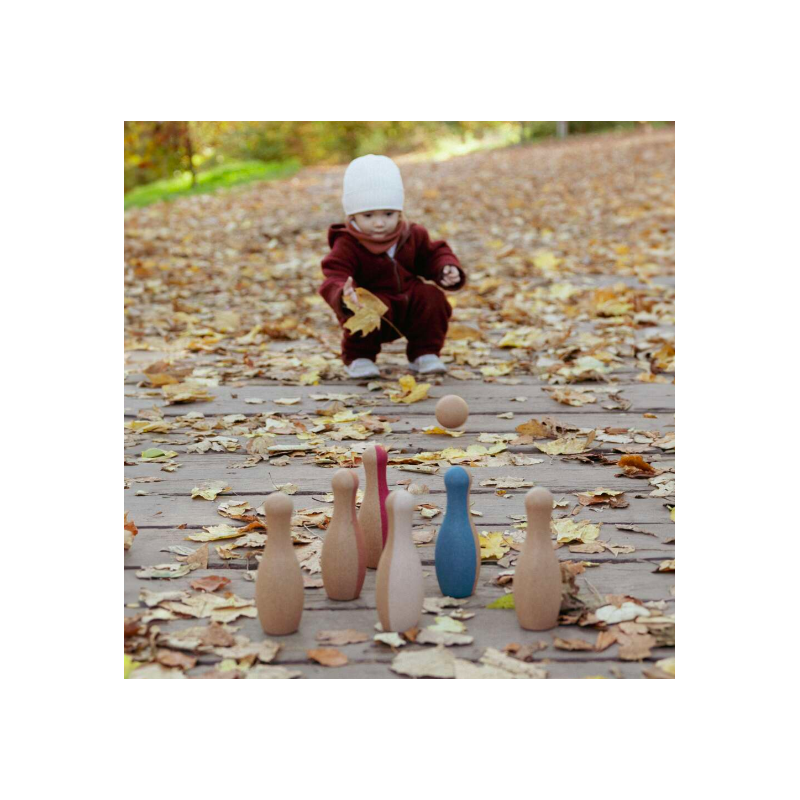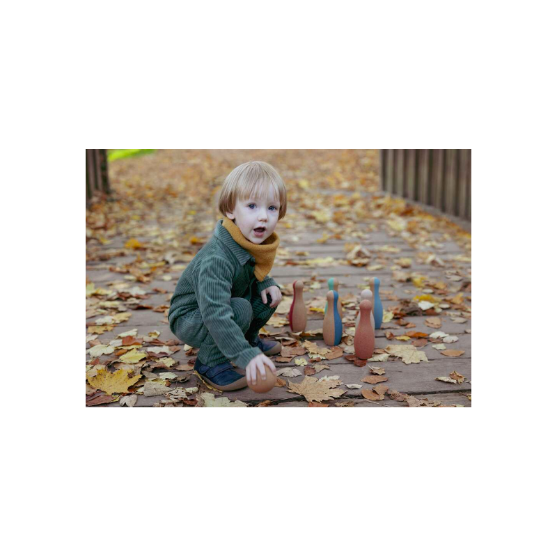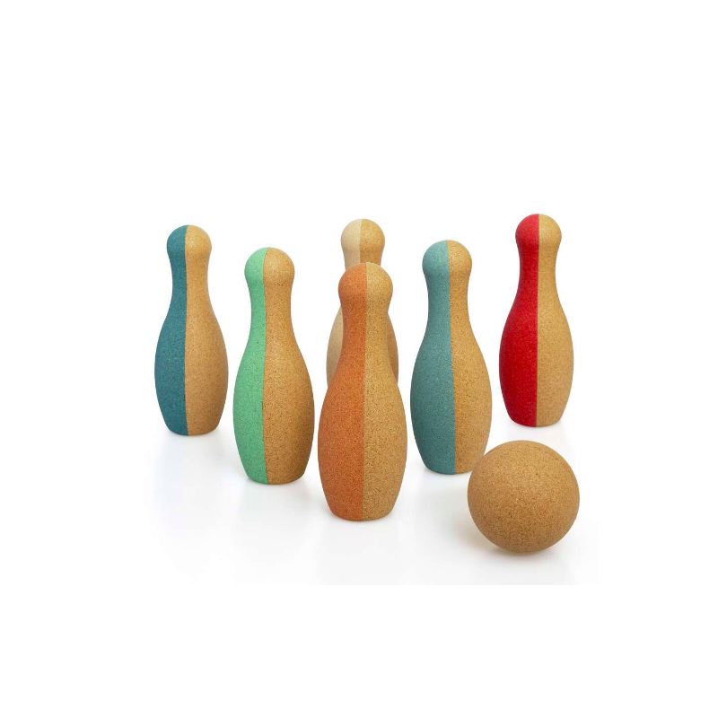 Cet adorable jeu de bowling en liège va déchaîner les passions des petits sportifs. Le bowling introduit avec simplicité la notion de « règles du jeu » auprès des enfants. Il est également parfait pour le développement de la coordination œil-main. Entièrement en liège, cet ensemble de quilles et de boules est robuste et très léger. Les enfants peuvent s'amuser pendant des heures, sans déranger les autres, car le jeu reste silencieux. C’est encore plus passionnant quand toute la famille s’y met ! Contribue au développement des enfants. Ce classique parmi les activités pour les enfants les invite à bouger, tout en les invitant à découvrir l'univers du sport. Le bowling est parfaitement adapté pour le développement de la coordination œil-mail ainsi que de la motricité, le tout en s'amusant indéfiniment à l'intérieur ou dans le jardin.
