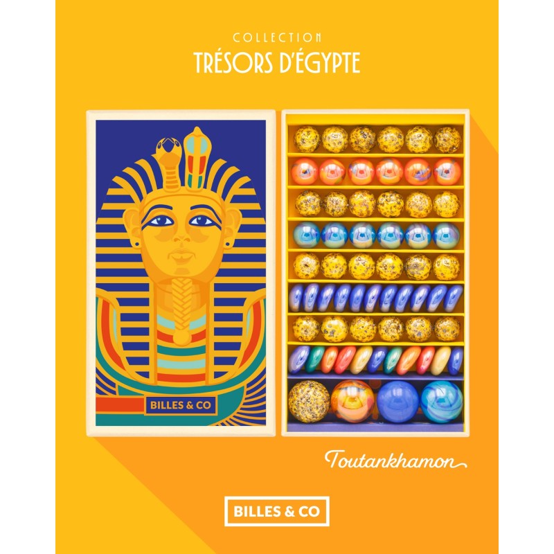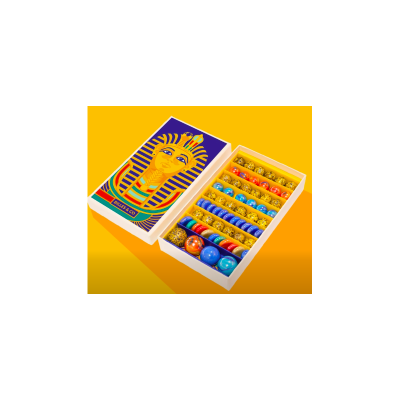 Découvrez le grand coffret de billes Egypte "Toutankhamon" : Coffret de 62 billes, galets et calots