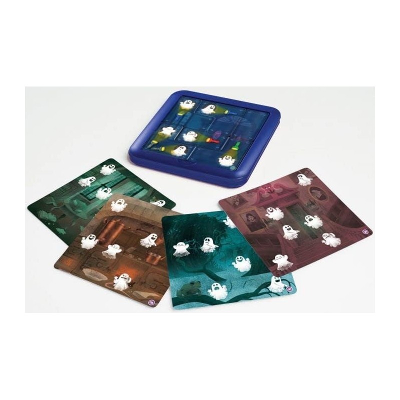 Éclairez tous les fantômes ! Savez-vous ce que les fantômes font dans une maison hantée? Découvrez-le en les éclairant à l’aide des faisceaux lumineux de vos torches électriques imprimés sur les tuiles de jeu. La Nuit des Fantômes vous éclairera en outre sur le nombre de fantômes présent dans la maison à chaque défi. Amusez-vous à découvrir nos amis flottants au travers des 60 défis évolutifs proposés. Jeu de société La nuit des fantômes de Smart Games. A partir de 5 ans.
