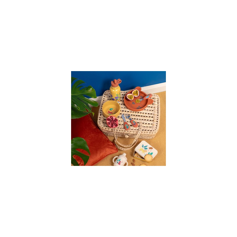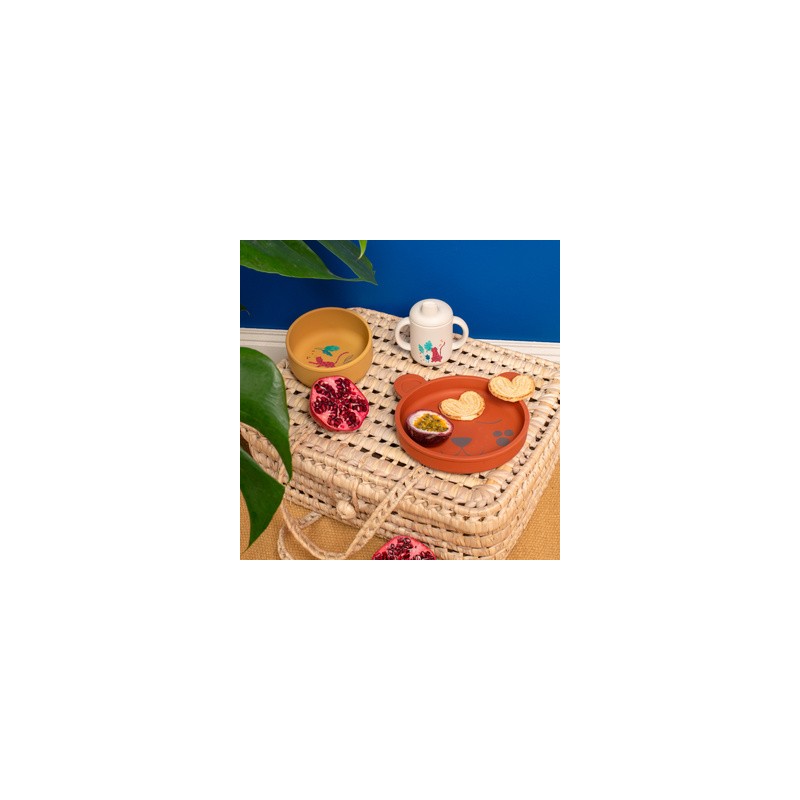 Ce joli set comprend une assiette, un bol et un gobelet, chacun décoré avec les charmantes illustrations de l'univers Mawa. Fabriquée en silicone robuste, cette vaisselle est à la fois douce, flexible et incassable, idéale pour les petites mains en exploration.