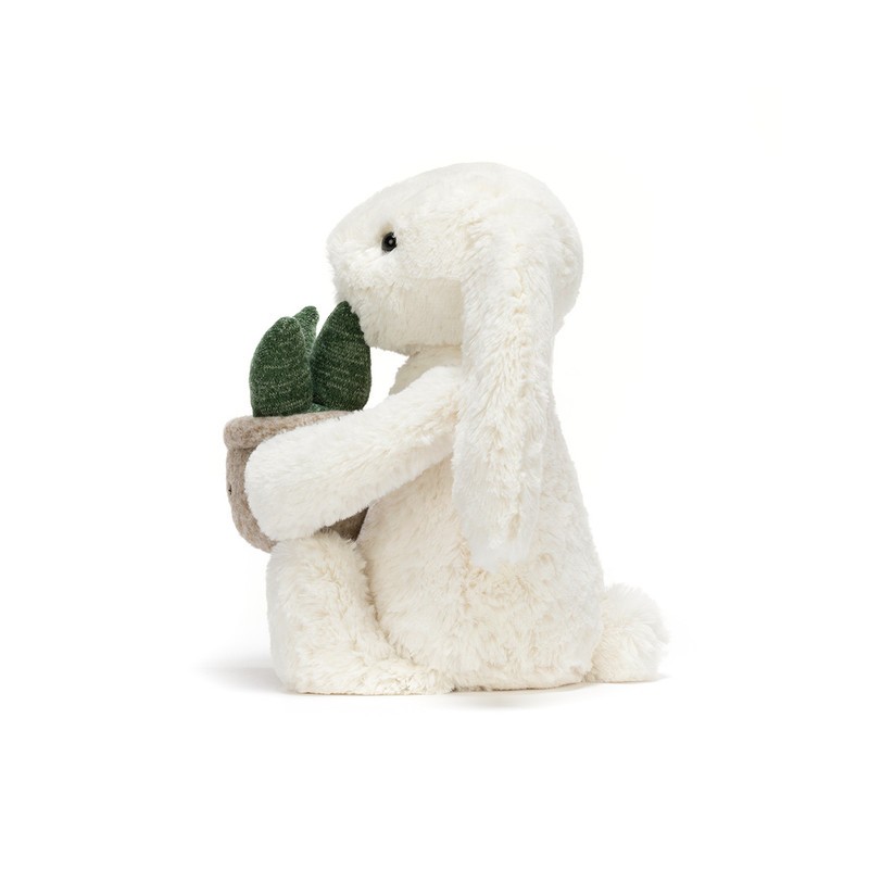 Découvrez la peluche lapin "Cream Bunny with Plant" de la célèbre marque anglaise Jellycat. Un lapin attendrissant tenant entre ses deux pattes une plante annonciatrice de bonnes nouvelles, de printemps et de positivité. Cream Bunny with Plant cultive l’art des petites attentions. Pour elle, les plus beaux cadeaux sont ceux qui grandissent avec vous… comme ce petit brin de verdure, parfait pour égayer une pièce ou votre coeur !