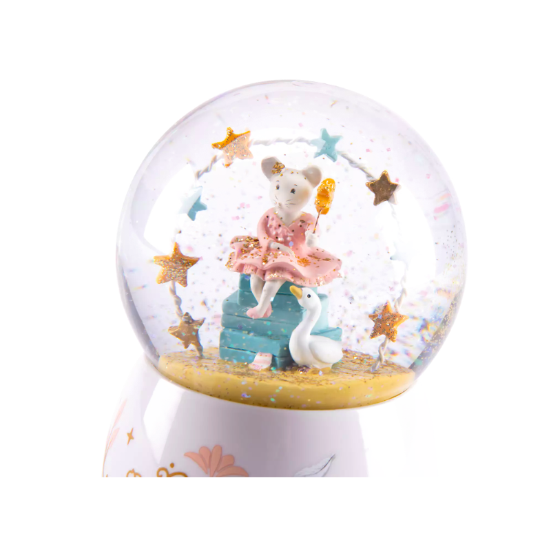 Dans cette boule à neige musicale enchantée, la magie opère alors que la petite souris et son amie l'oie dansent joyeusement au milieu d'un tourbillon de paillettes holographiques étincelantes ! Non seulement elle apporte une touche de féérie à la décoration de la chambre de bébé, mais elle offre également une douce mélodie pour accompagner tendrement les moments de coucher pour un sommeil de douceur et de sérénité.