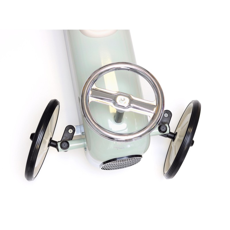 Laissez-vous emporter par une touche de nostalgie en compagnie de notre emblématique porteur en métal. Son esthétique rétro saura captiver votre regard. Equipé de larges roues en caoutchouc, il garantit aux jeunes conducteurs une stabilité optimale, assurant ainsi une première expérience de course sécurisée et mémorable. Coloris vert sauge.