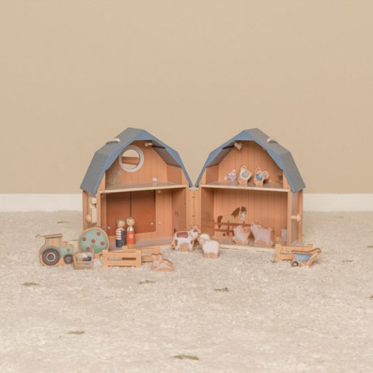 avec cette maison de jeu en forme de grange à la ferme, votre petit s'amusera beaucoup ! ouvrez la grange et les animaux arrivent. avec toutes ces figurines en bois, votre enfant peut créer sa propre histoire et stimuler son imagination. et lorsque la récréation est terminée, il suffit de ranger toutes les figurines dans la maison de jeu, de la plier et de la ranger. avertissement : ne convient pas aux enfants de moins de 3 ans en raison des petites pièces. risque d'étouffement.