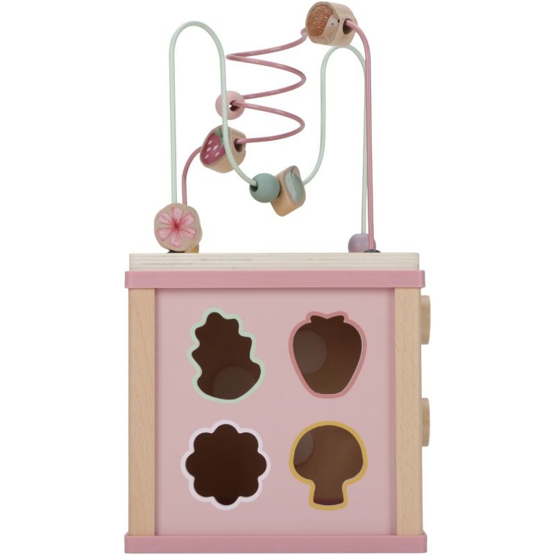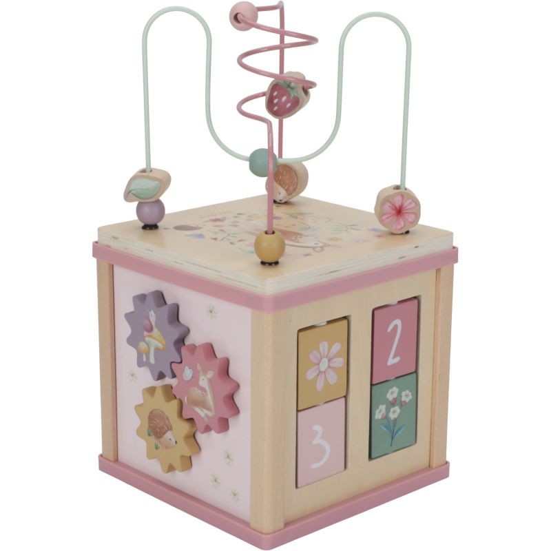 Découvrez le cube d'activités "Fairy Garden", un cube aux multiples faces et aux couleurs douces et naturelles inspirées de la forêt : des feuilles majestueuses, des fraises, de jolies fleurs, un papillon...Chaque face de ce cube est une nouvelle découverte: une boîte à formes, des engrenages tournants, des puzzles ludiques et un labyrinthe de perles stimulant la motricité des plus petits.