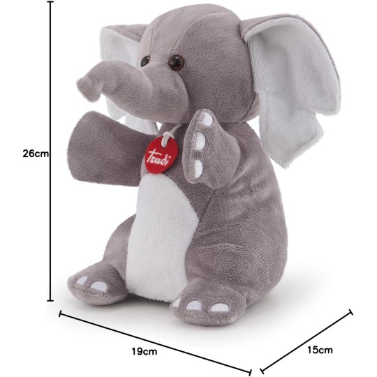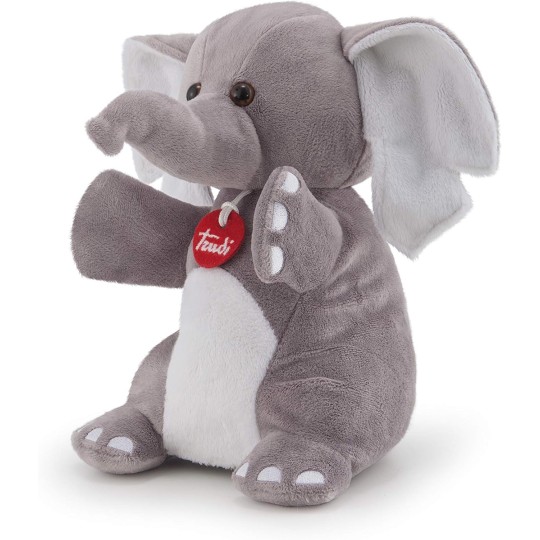 Un assortiment de petits animaux vivaces, auxquels on donne vie simplement avec ses mains. Des personnages drôles, protagonistes de fables et de comptines, prêts à donner leur voix à l’imagination de tous les enfants. Ces marionnettes espiègles sont aussi comme des nounours douillets à embrasser et à emporter toujours avec soi. Marionnette éléphant de Trudi. Taille : 25 cm environ. Lavage 30° machine. Dès la naissance.