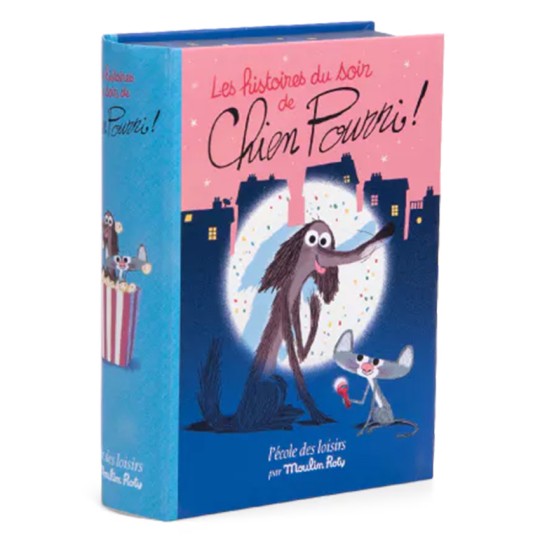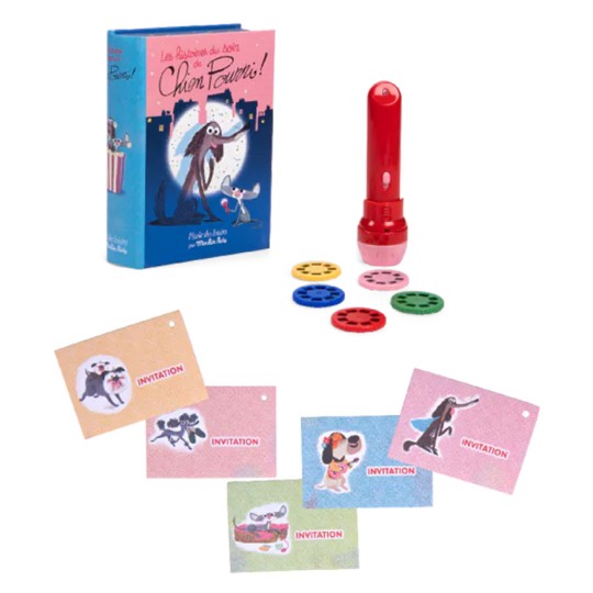 Ce coffret, qui se présente tel un livre enchanté, renferme une lampe de projection et cinq disques contenant les espiègles aventures du facétieux Chien Pourri, célèbre personnage de l'École des Loisirs. Il est également accompagné de cinq invitations à l'imagination.